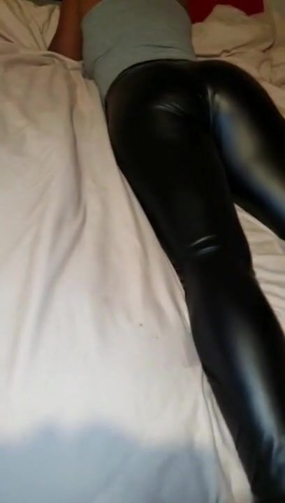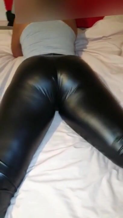 Leather Spandex Leggings of Big Booty Latina Panty Line Visible Tease