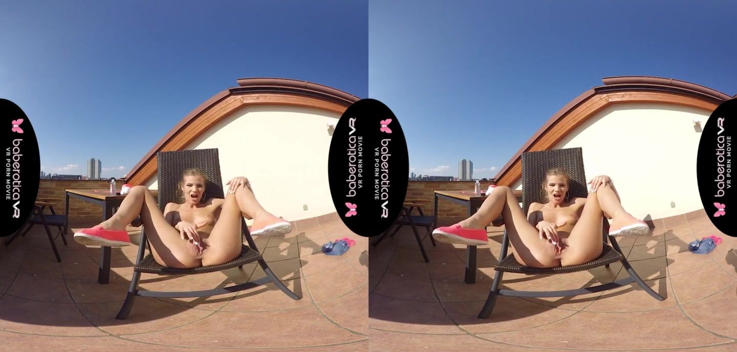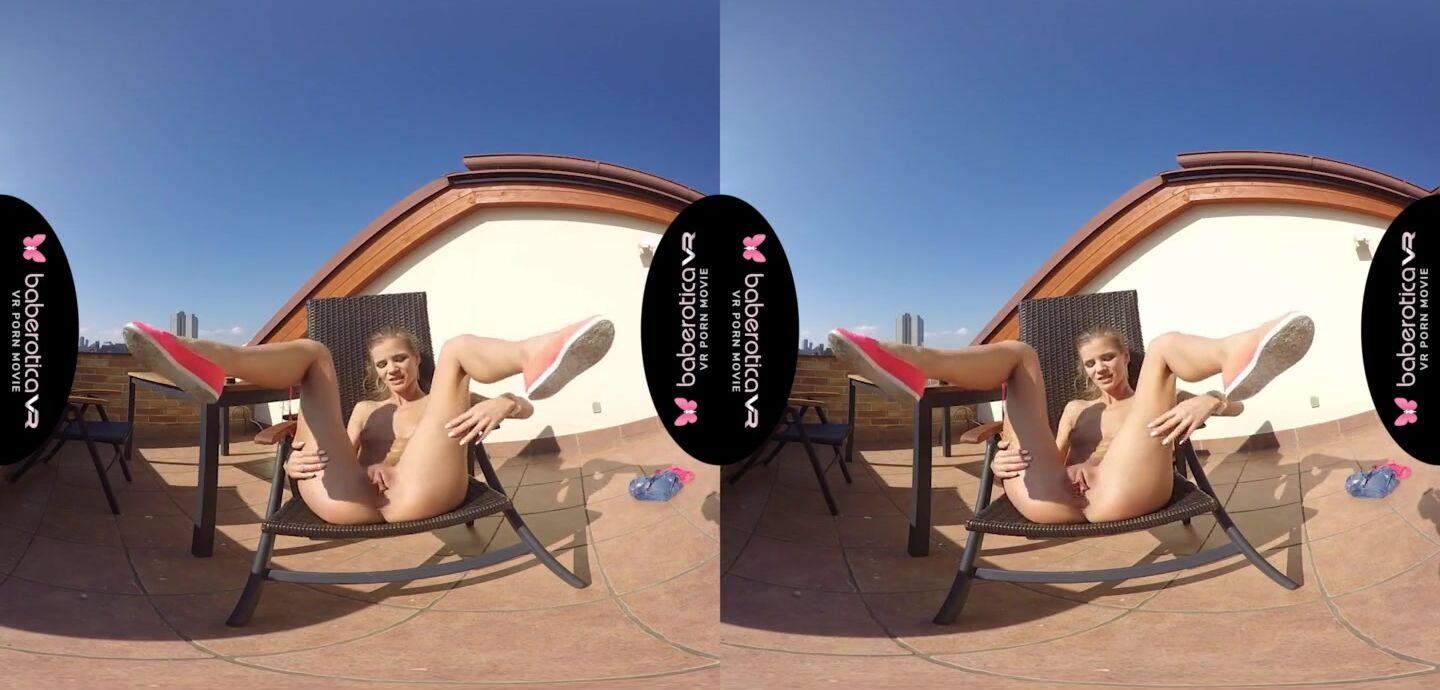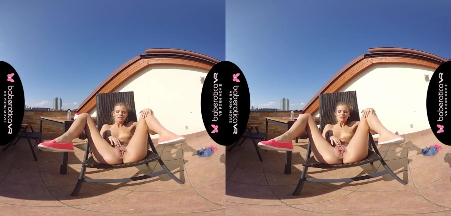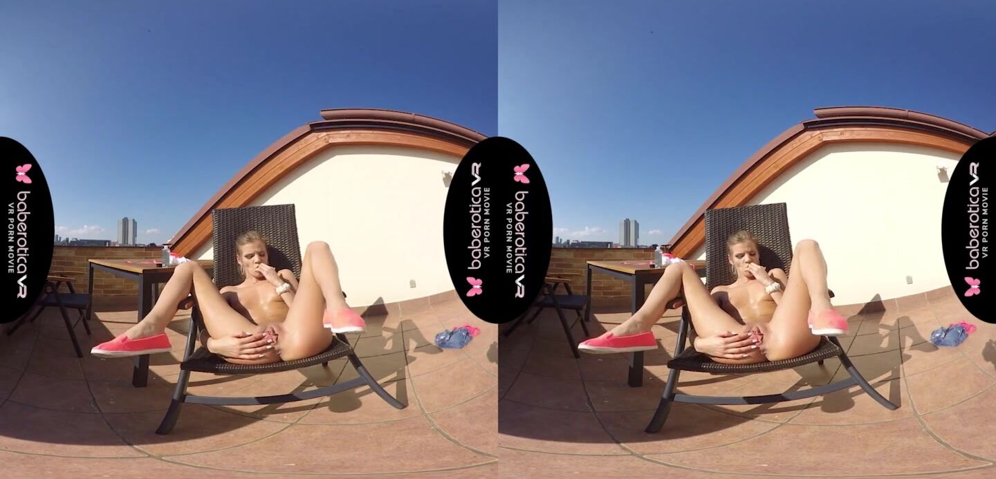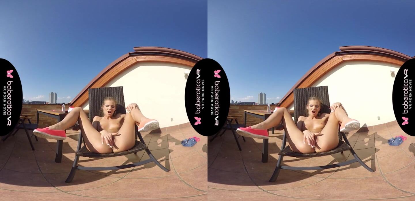 Solo girl, Sarah Kay is masturbating and moaning, in VR