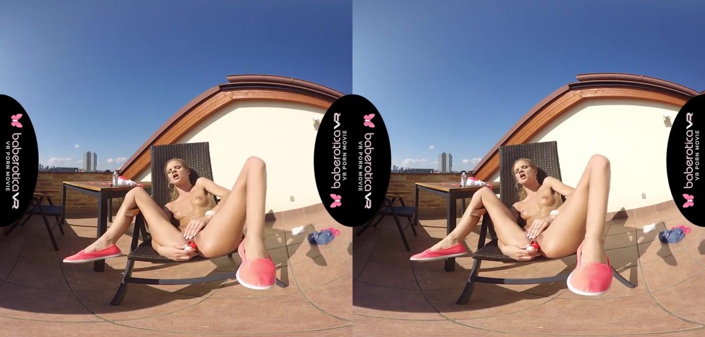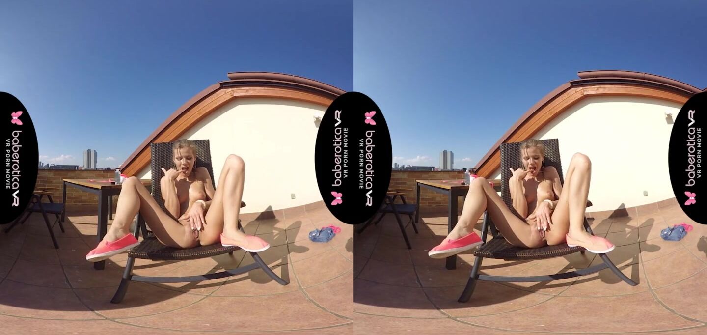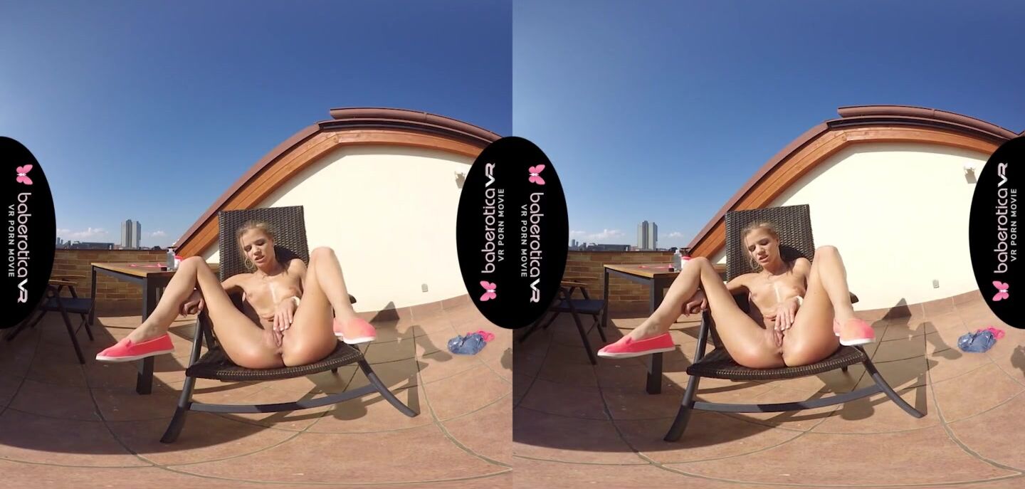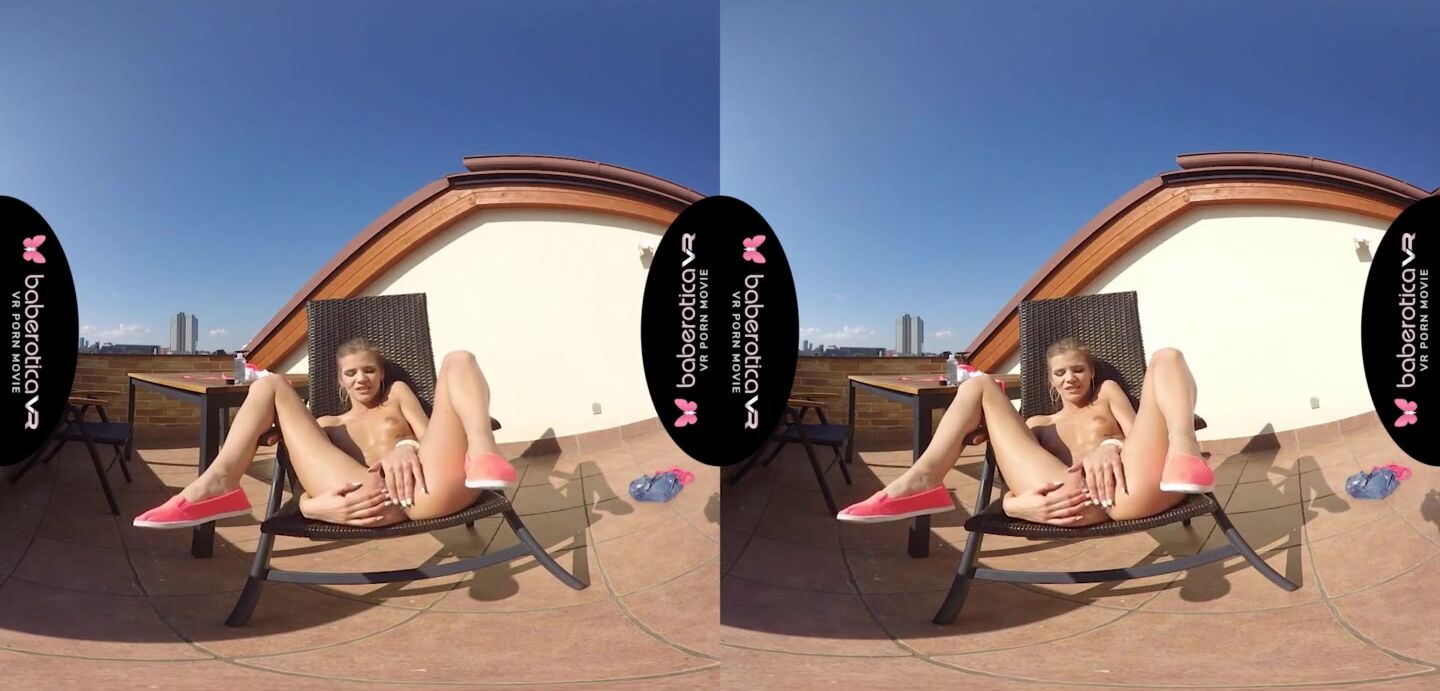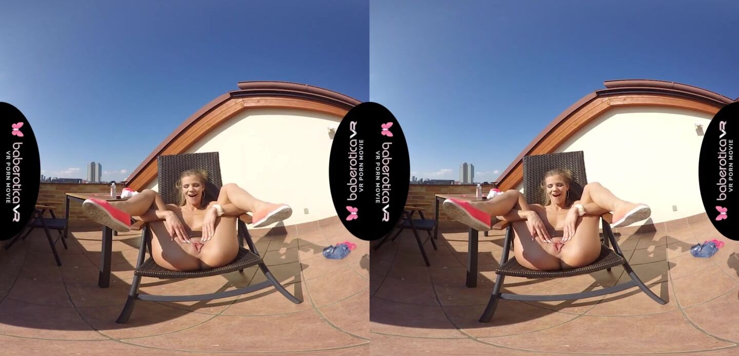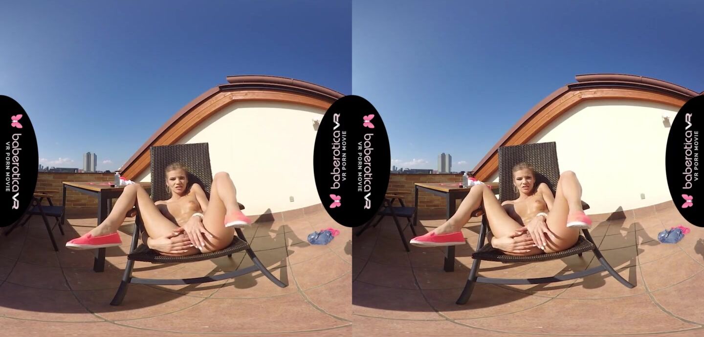Solo girl, Sarah Kay is masturbating and moaning, in VR