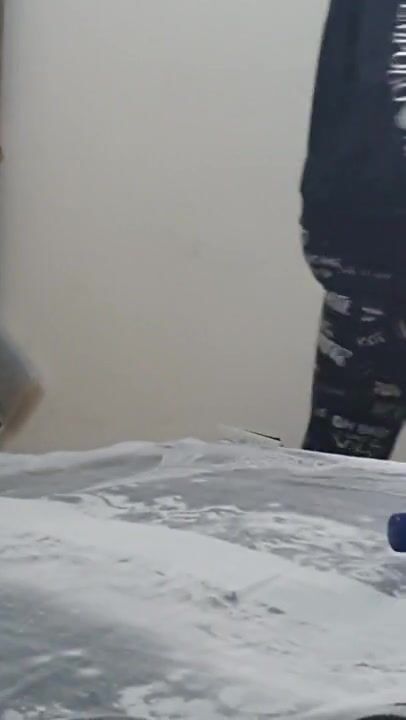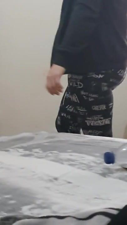 Step Mom Fucked into Step Son Room Ends with Cum on her Thigt Leggings