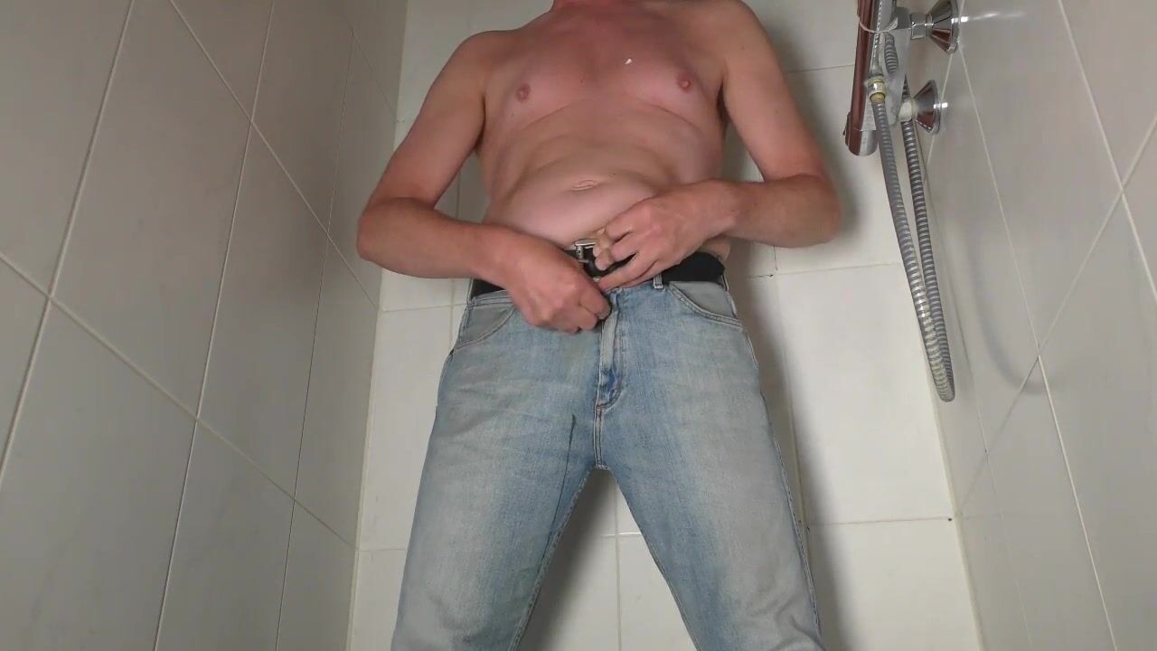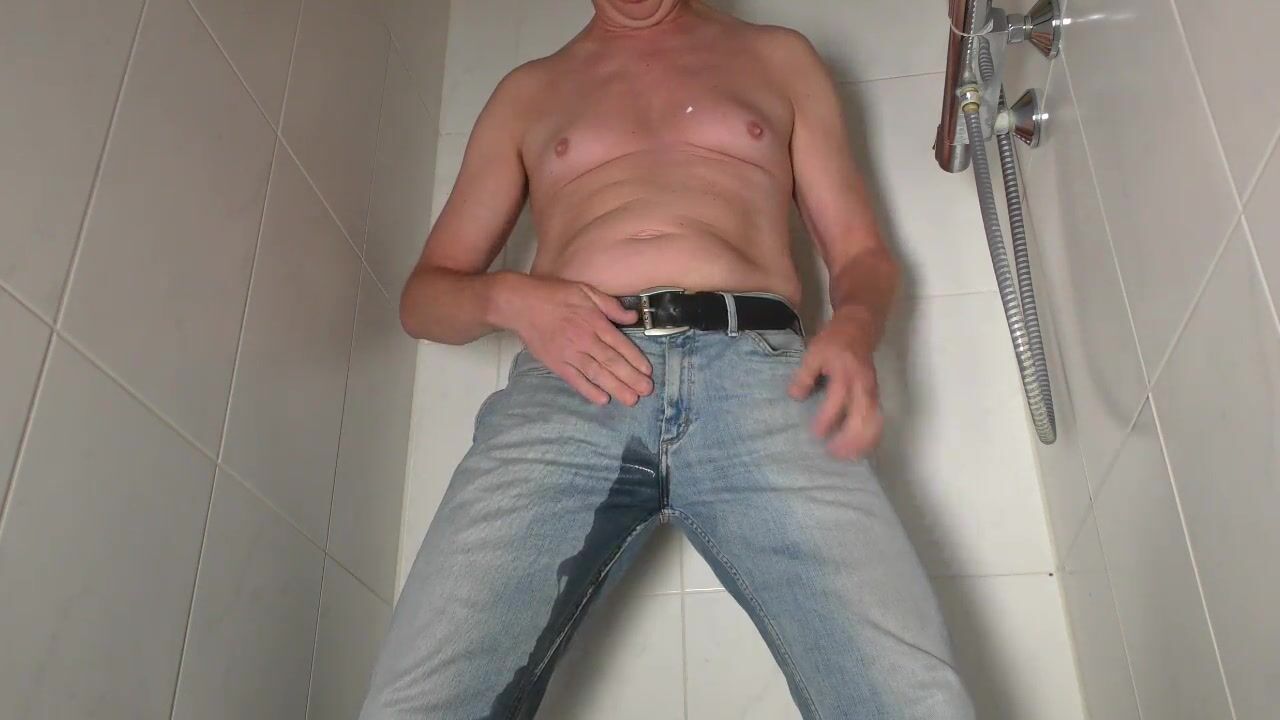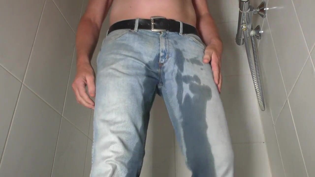 Desperate man jeans pissing pissing fun from Holland