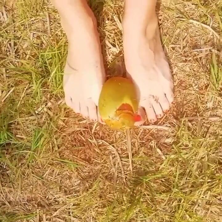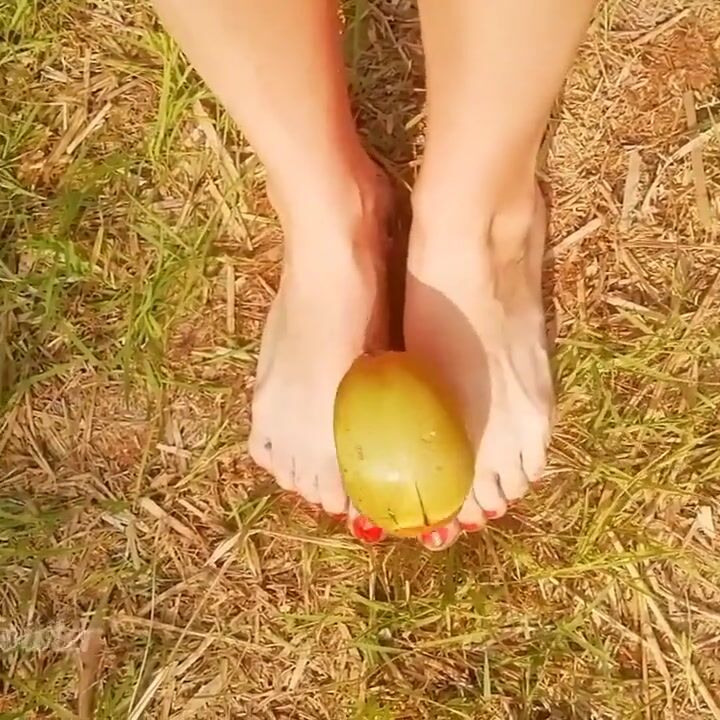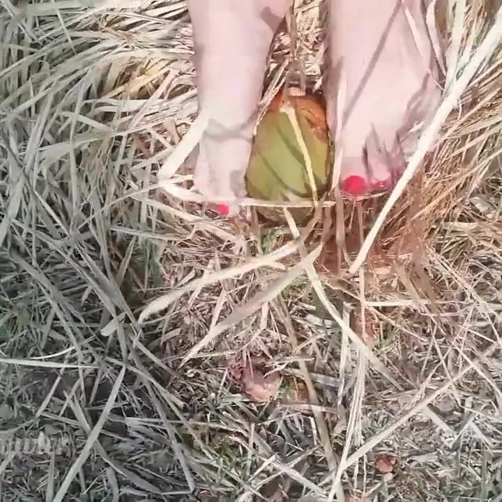 Tik Tok. Beautiful Teen Foot Playing Coconut Sexy Toy