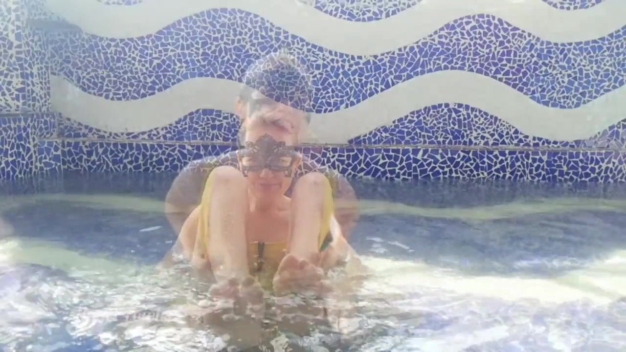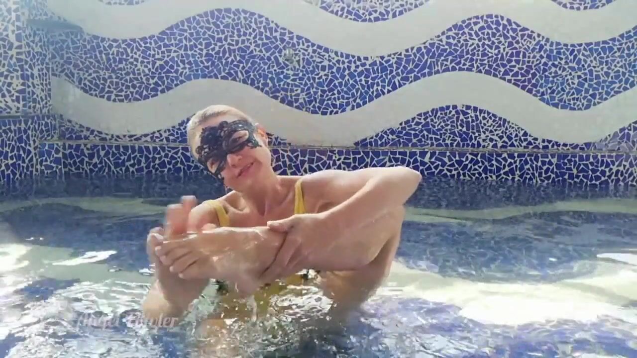 Tik Tok. Sexy Blonde Babe Swims, Masturbates in the Swimming Pool. Play in Water.