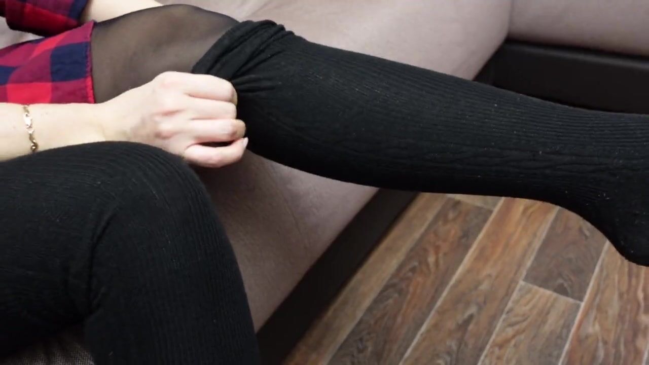 Foot Fetish Sexy Girl Show Feet Foot in Tights Pantyhose Nylon Black Knee Socks