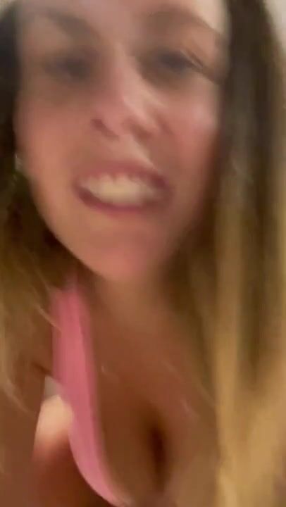 Juicy Julia peeing in bathroom and showing her big tits