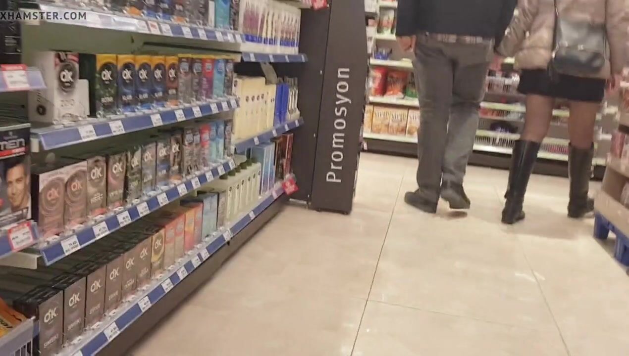 Girl in shiny black pantyhose and boots with her boyfriend