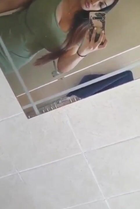 Juicy Julia peeing in bathroom and showing her big tits