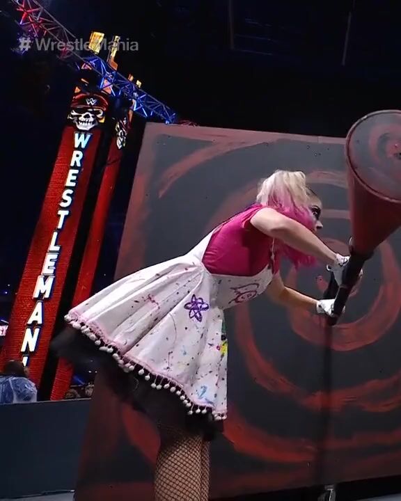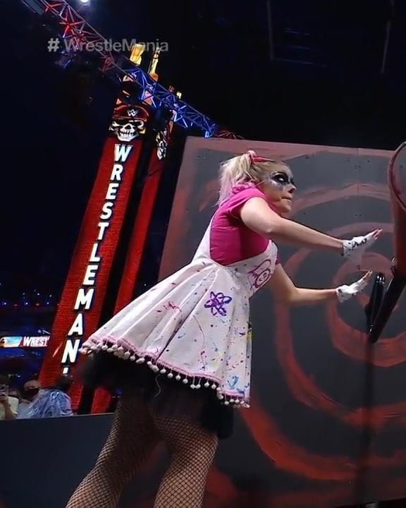 WWE - Alexa Bliss turning a crank at Wrestlemania 37