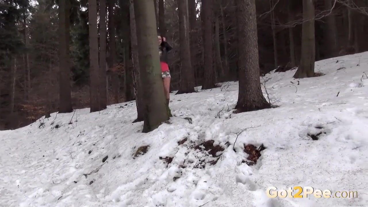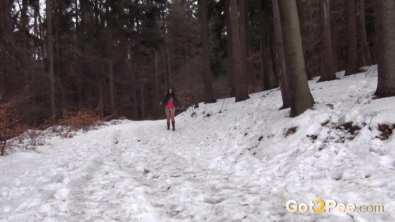 Hot Babe Rips her Pantyhose to Piss