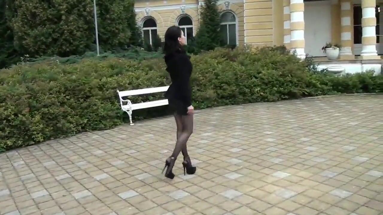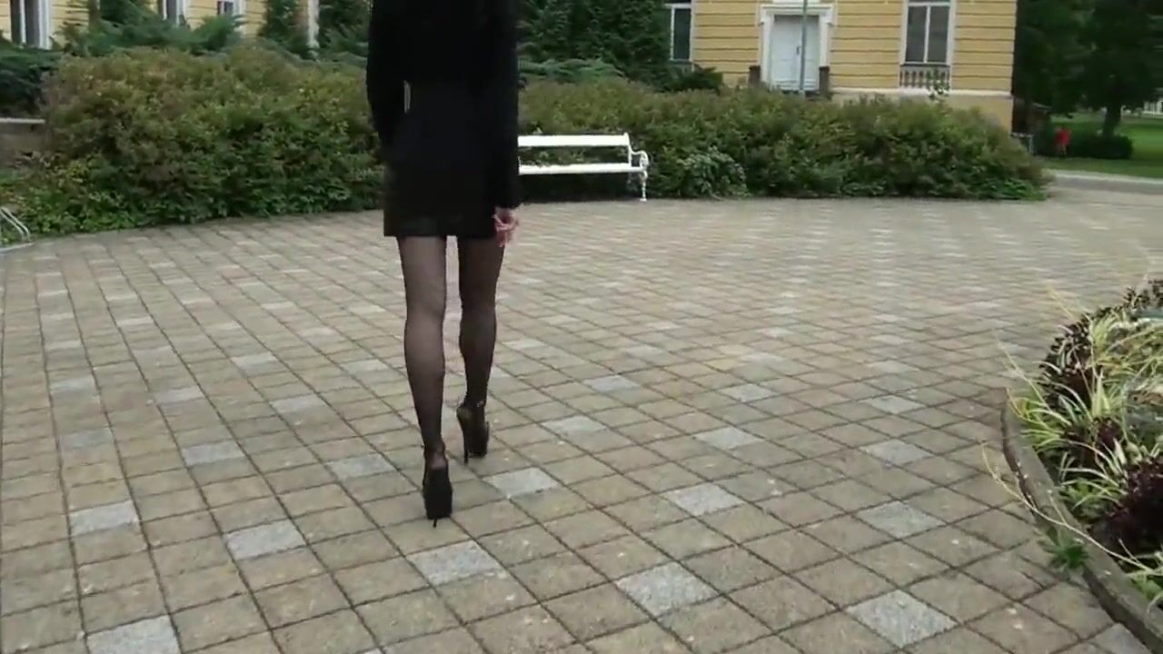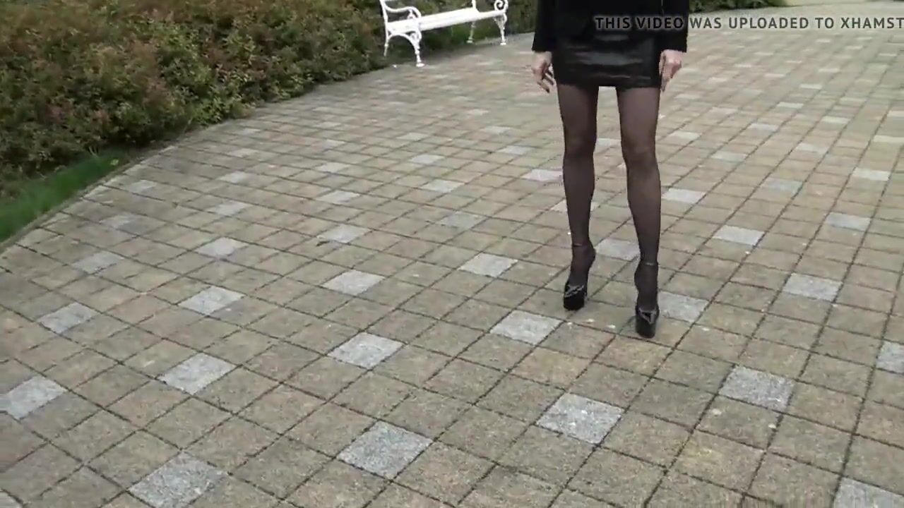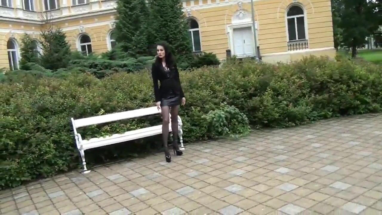 Lady Leather-Miniskirt walking