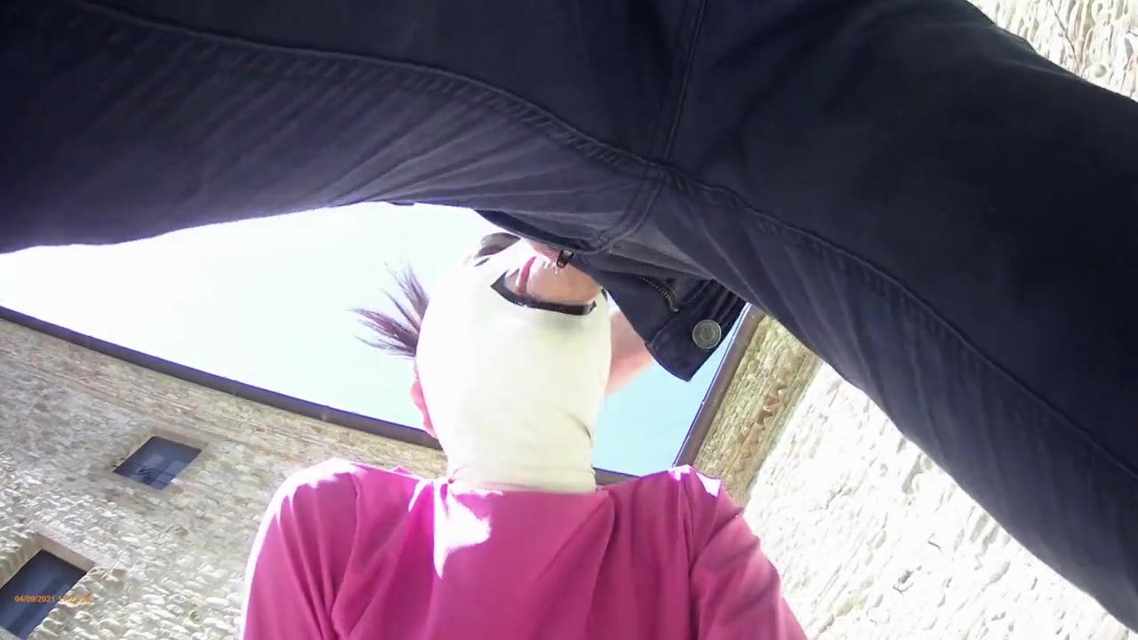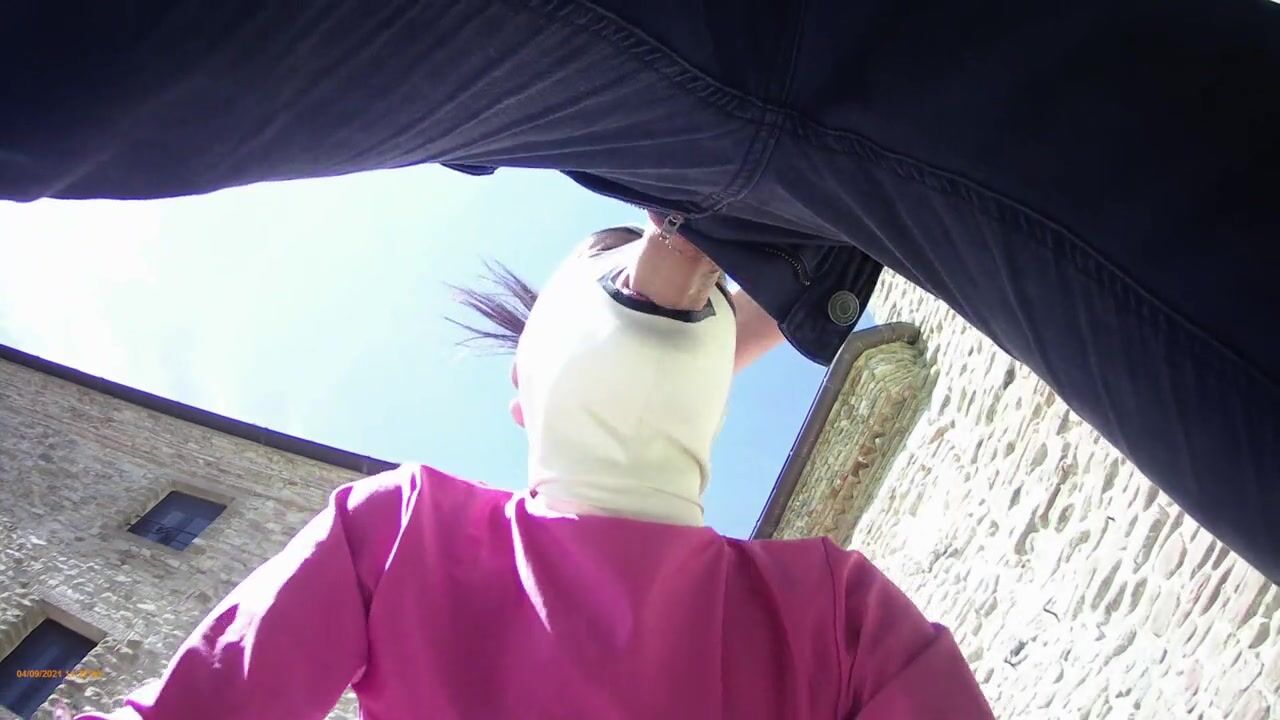 pink outfit in outdoor blowjob and oral creampie