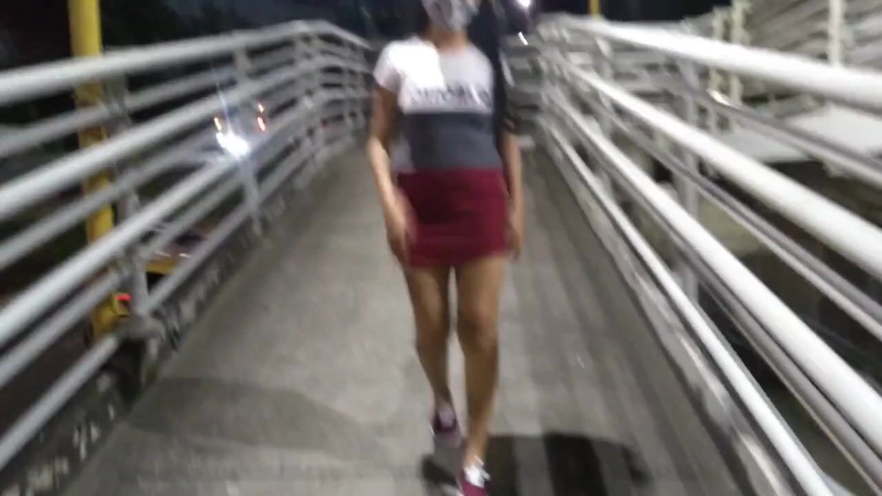 Walking in the Bridge doing Public Nudity under my Tight Dress Showing my Ass to Strangers outside