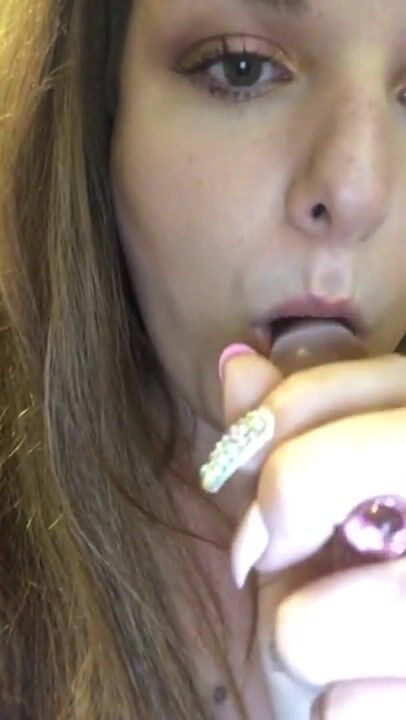 Licking my new glass dildo