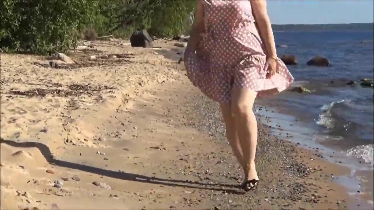 Sexy lady does striptease on the beach