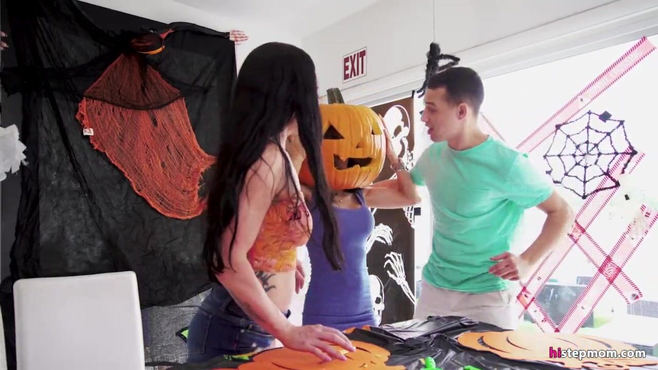 Stepmom's Head Stucked In Halloween Pumpkin, Stepson Helps With His Big Dick! - Tia Cyrus, Johnny