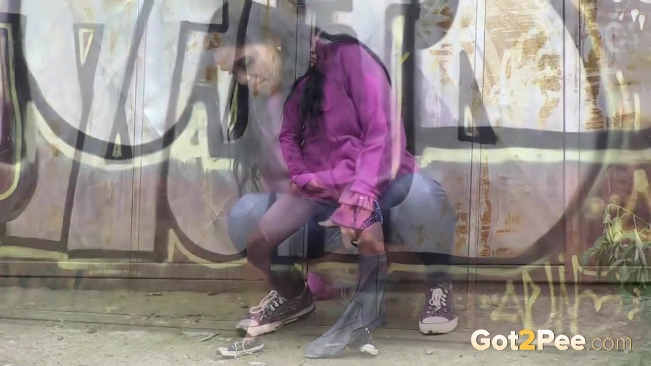 Dark Haired Babe Makes Huge Piss Puddle