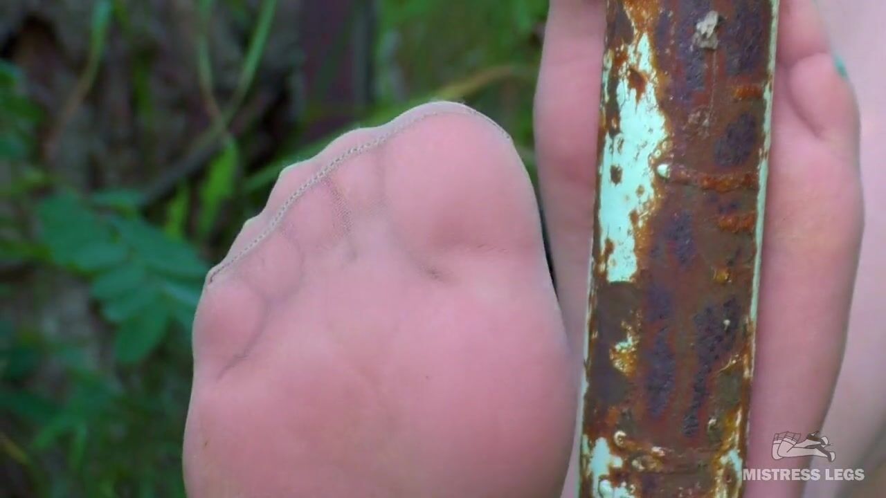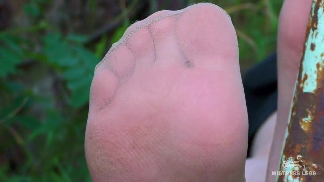 Sexy bare feet and nylon soles outdoor closeups