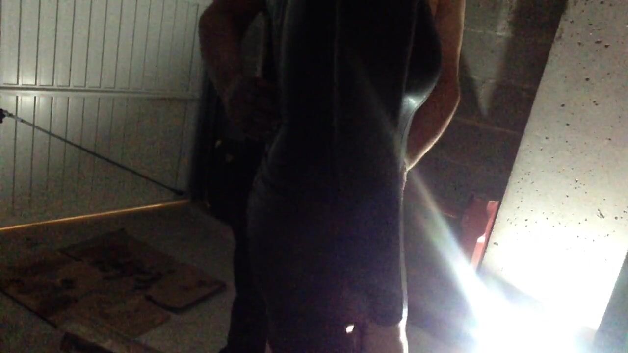 Handjob in latex bodysuit