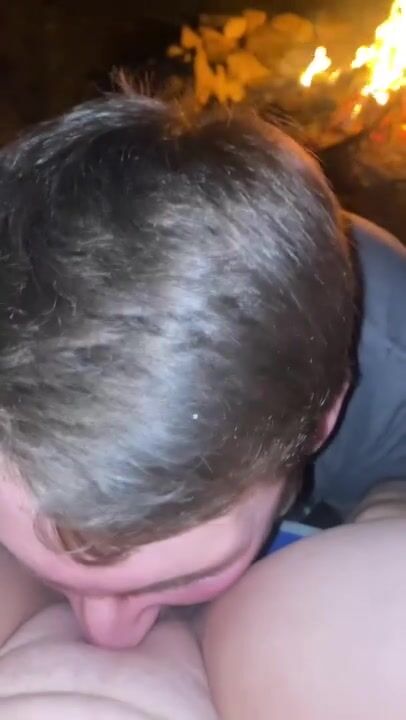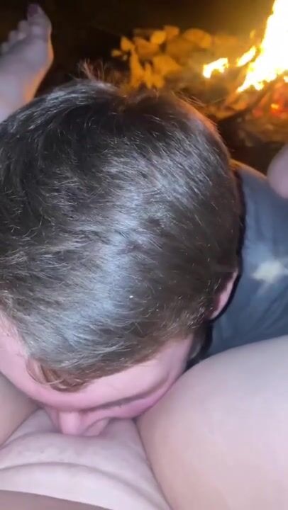 Eating and fingering girlfriends pussy by the campfire
