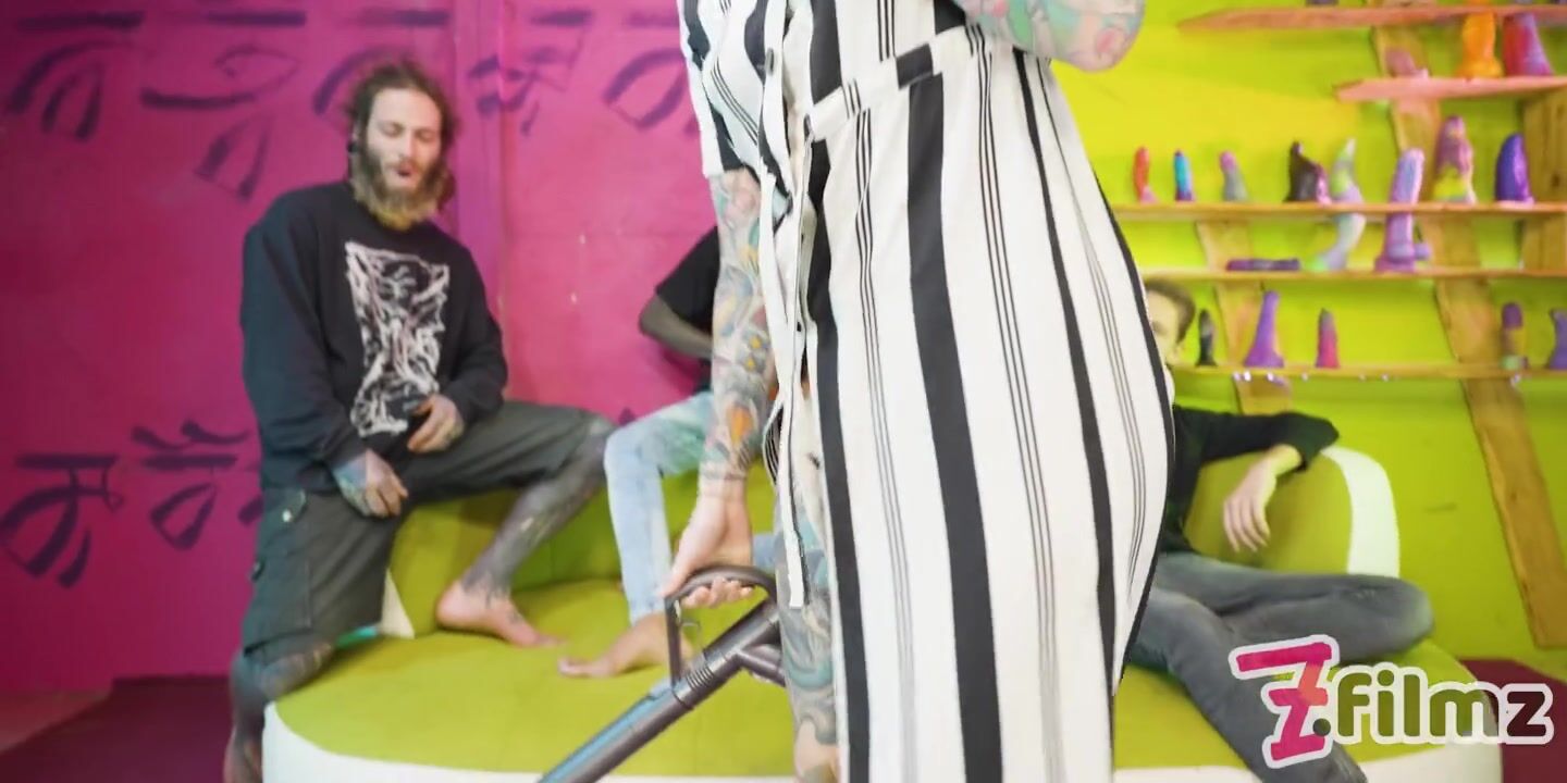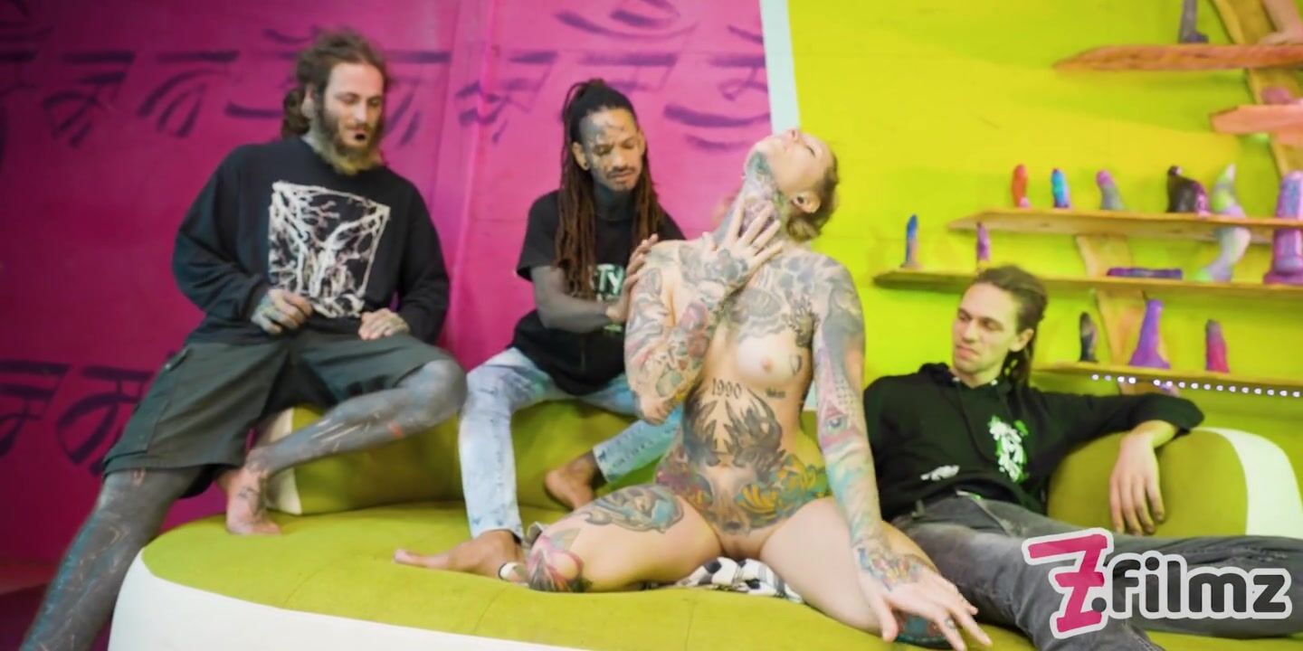 Tattoo maid gets ANAL fucked by 3 guys, big dicks, Ass to mouth, rough fuck