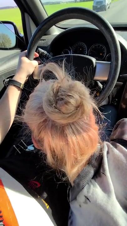 Hot Blonde gives BF the best head bobbin' Roadhead