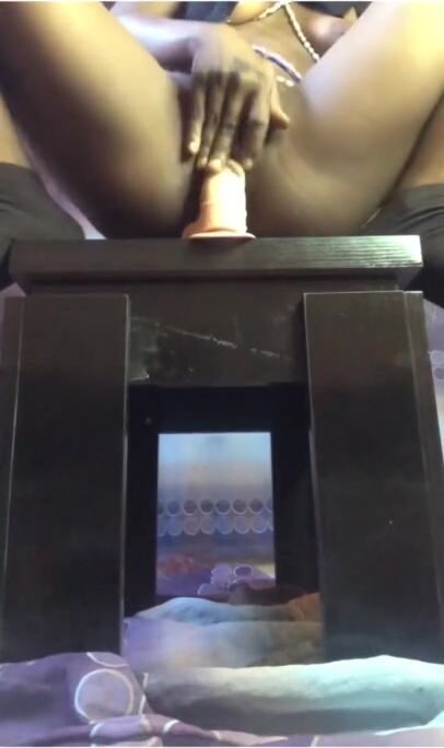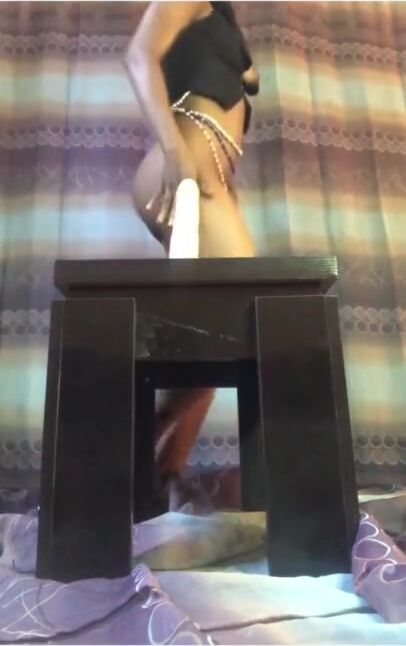 Ebony teen girl RIDES Dildo on Table and twerking on didlo
