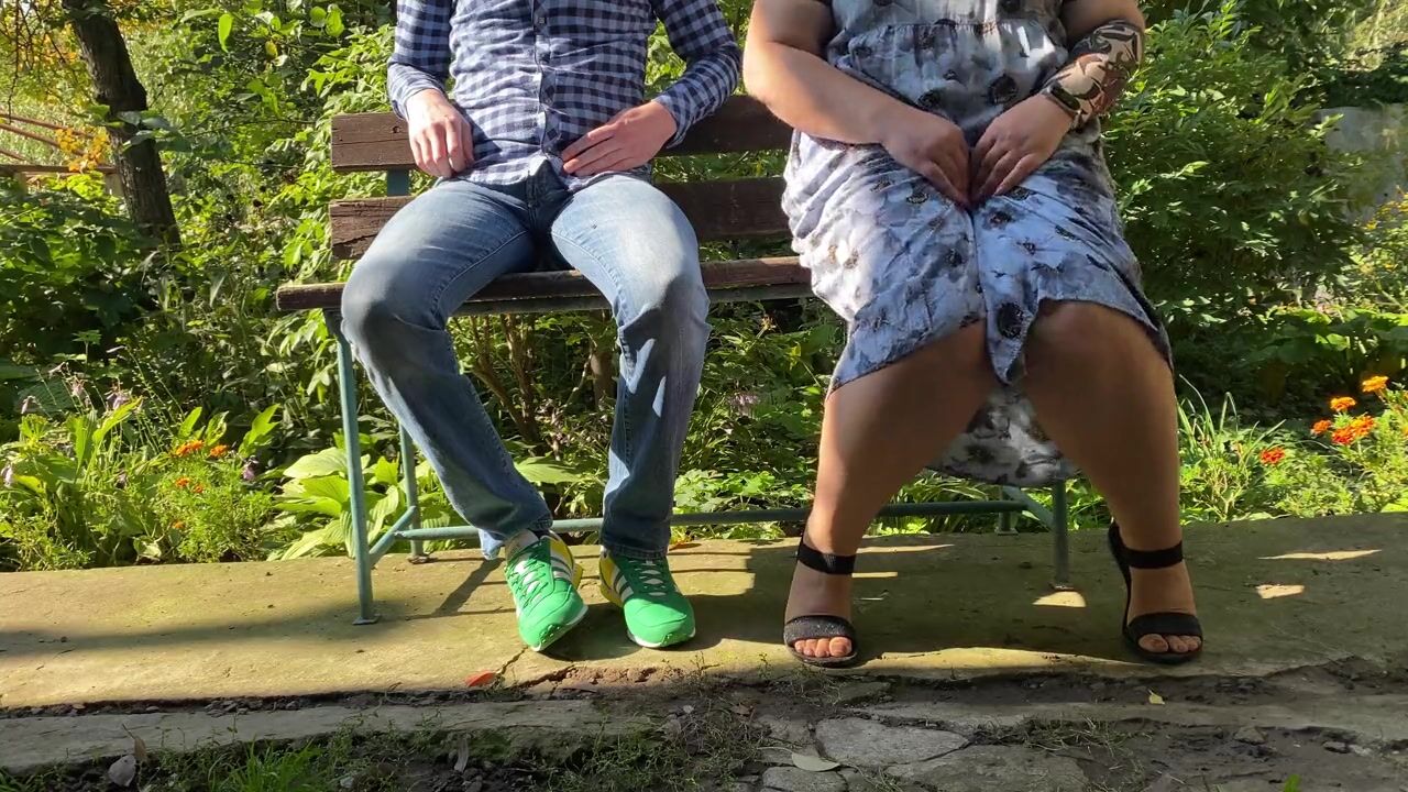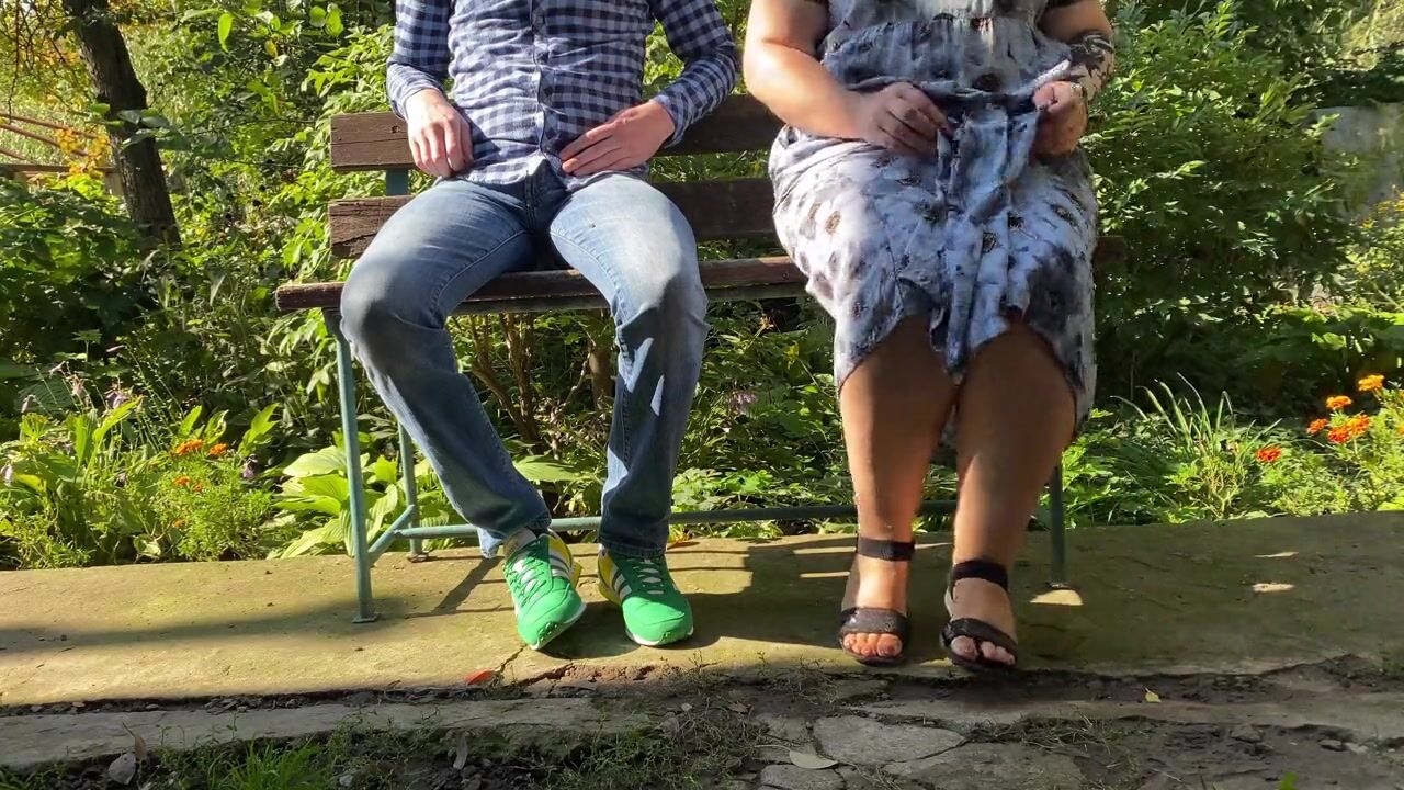 Gorgeous mother in law pissing with legs spread outdoors