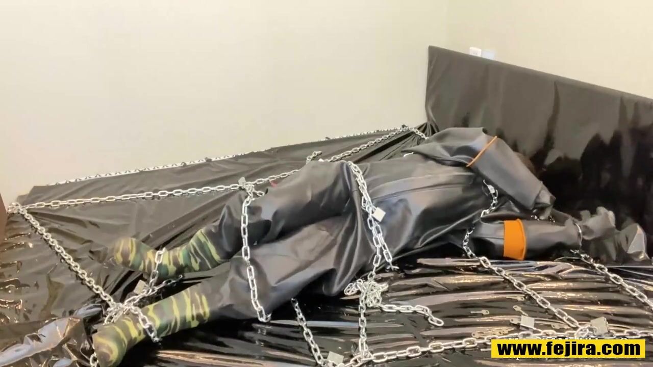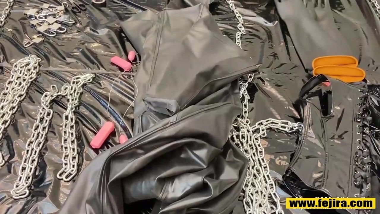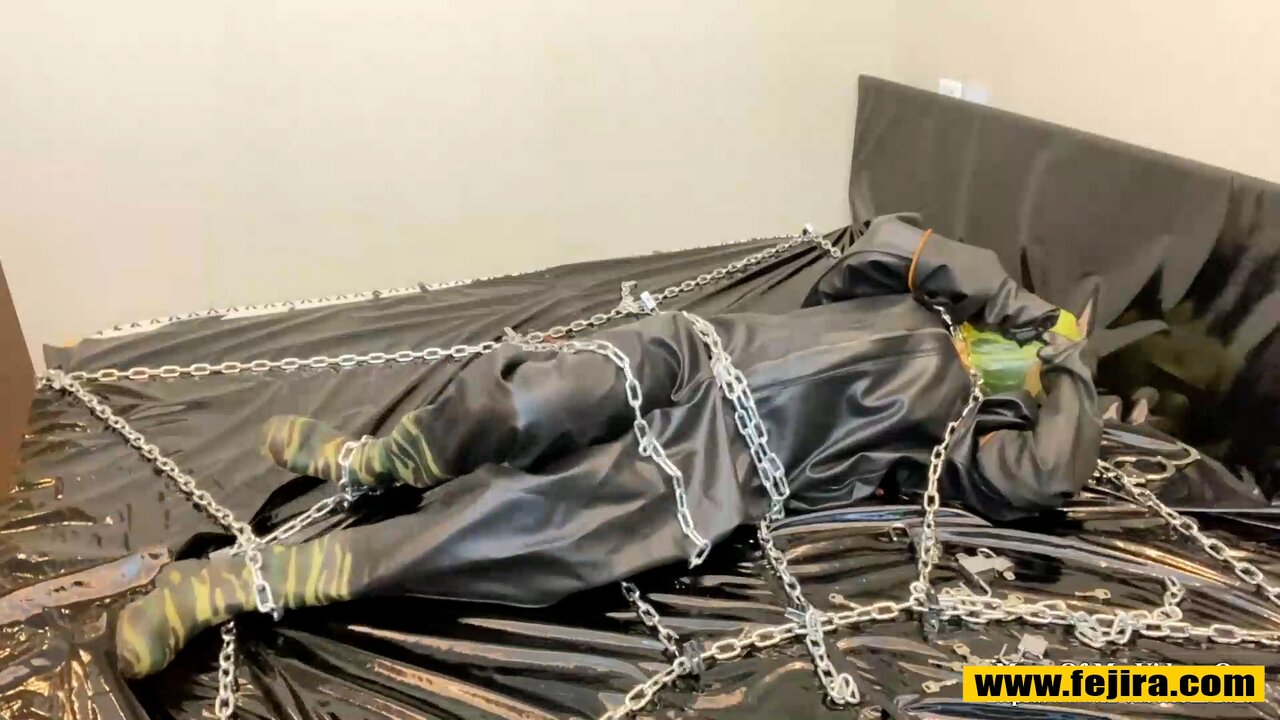 Fejira com Heavy latex and chain self-bondage orgasm