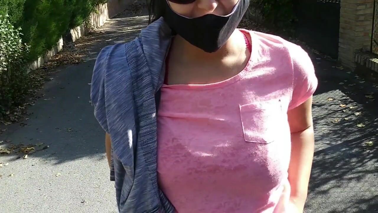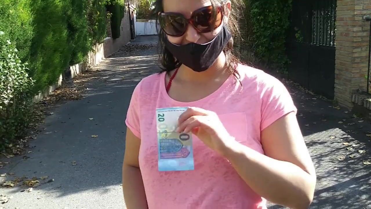 Stranger shows tits and sucks for money in the street
