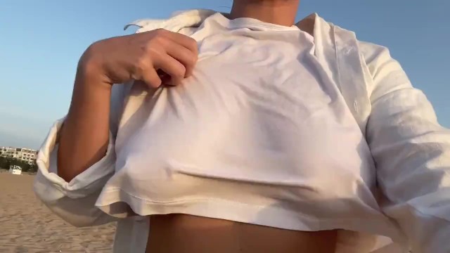 Walking braless and flashing tits outdoor