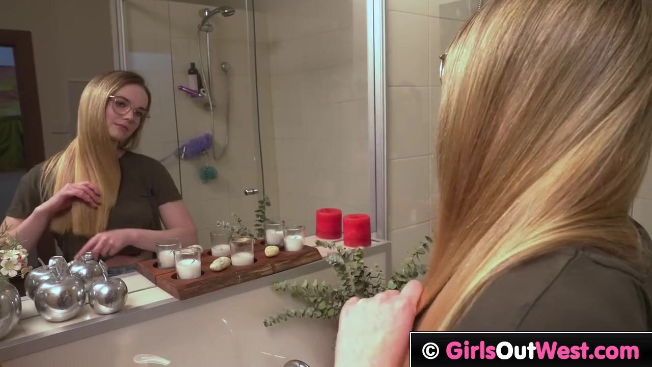 Cute blonde babe masturbates in shower