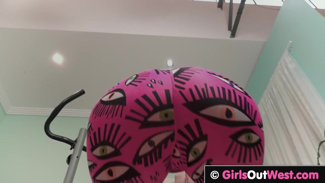 Sporty pale redhead stimulates her hairy cunt with massive dildo