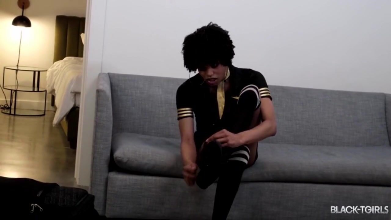 BLACKTGIRLS: Cloudy is our private hostess. Watch how she masturbates her big cock