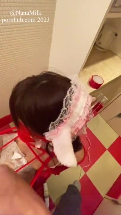 猫耳コスプレのNanaMilkを椅子に縛り、喉の奥まで無理やりイマラチオ&ビンタ