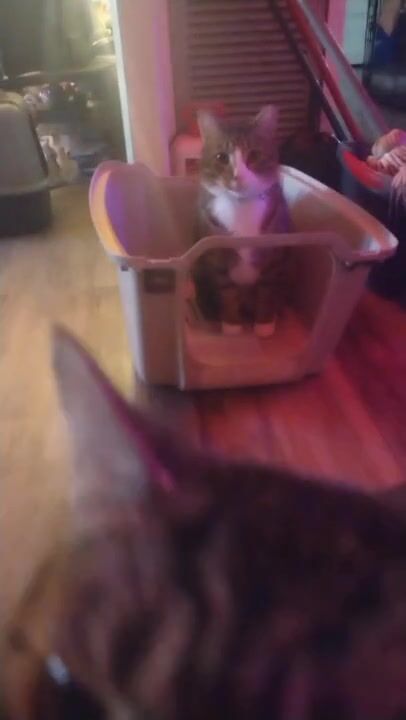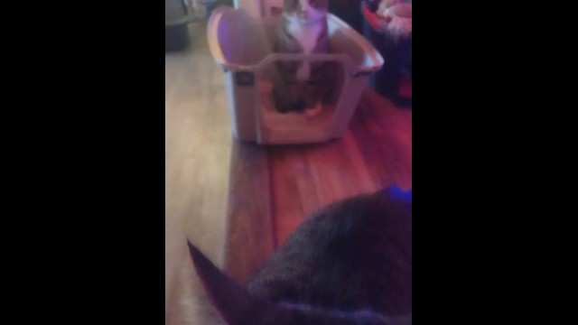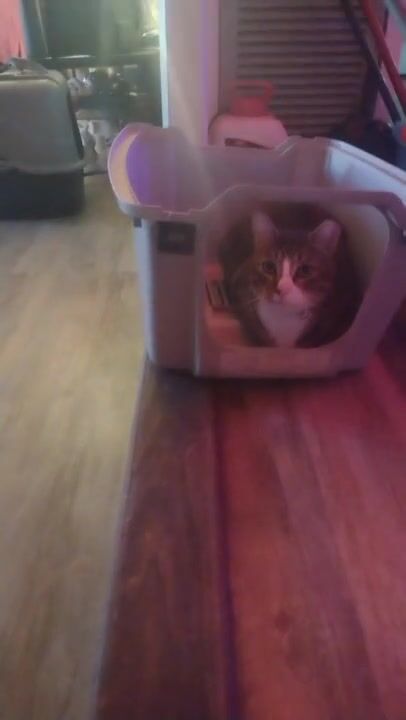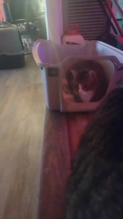 Cute cat makes his kitty litter his bed part 2