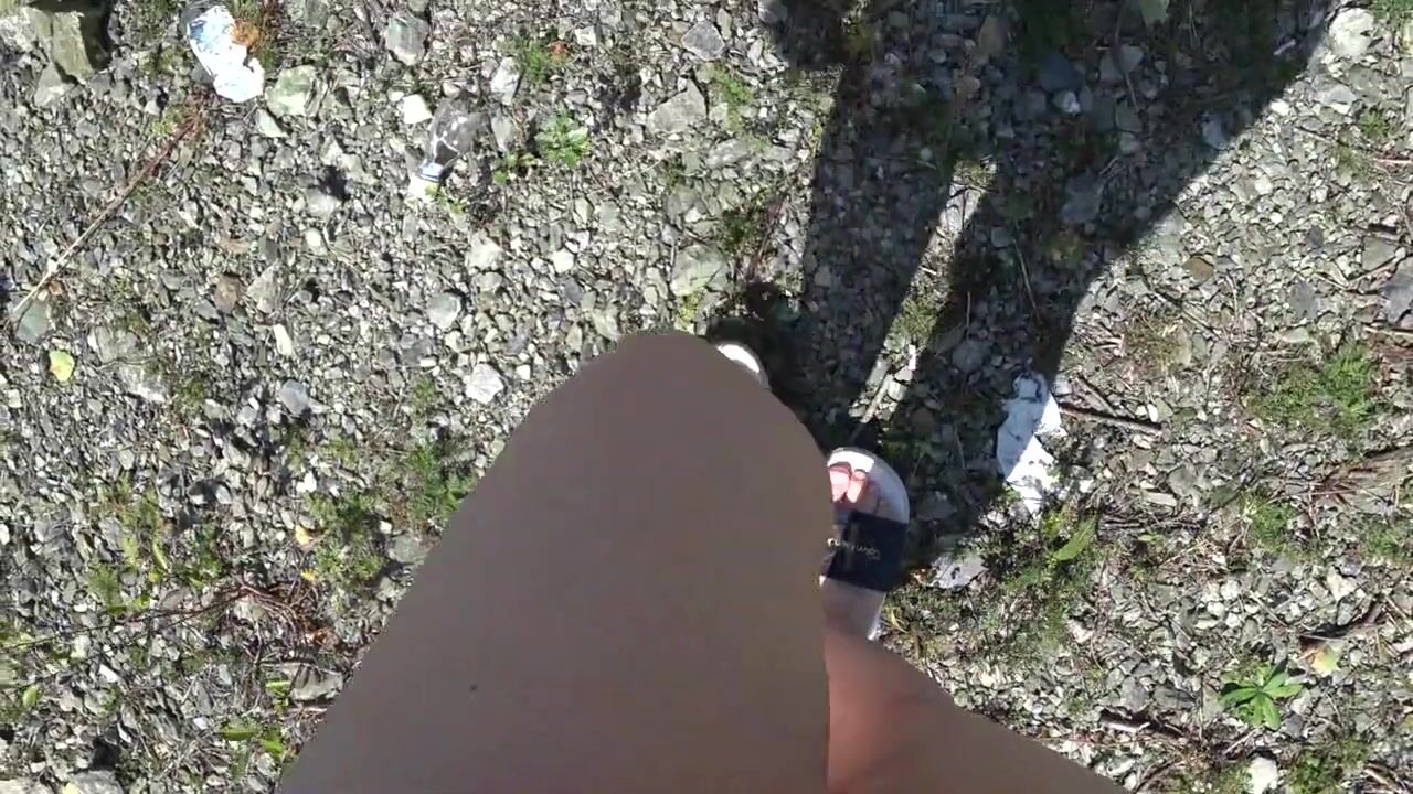Foot fetish and pissing outdoors Feet in Calvin Klein slippers POV