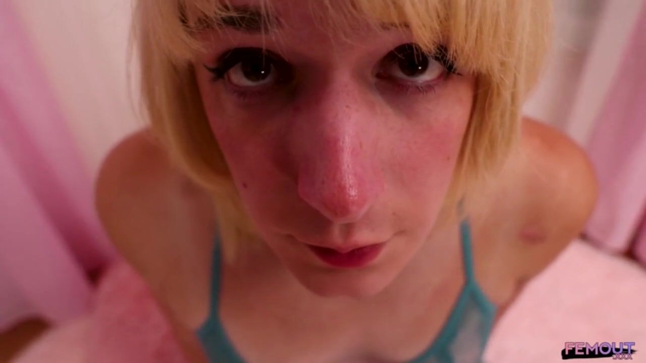 FEMOUT.XXX: Small tits blonde tranny masturbates her cock with a sex toy.