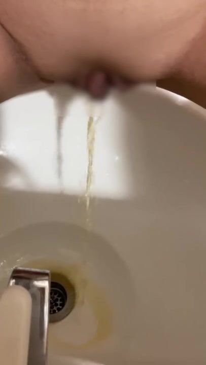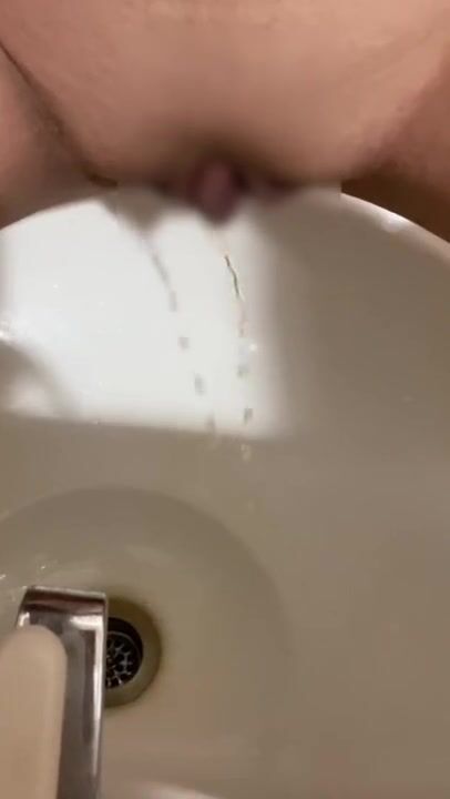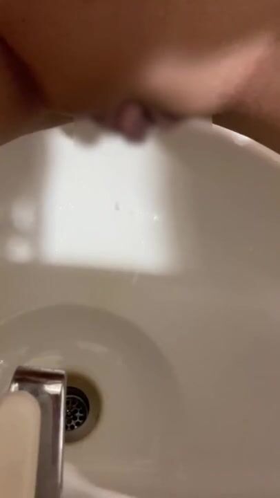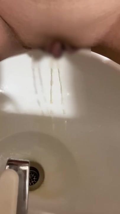 洗面器で放尿!!後ろから急に人がきて