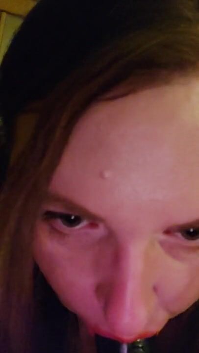 Sucking and gagging on my 9 inch dildo