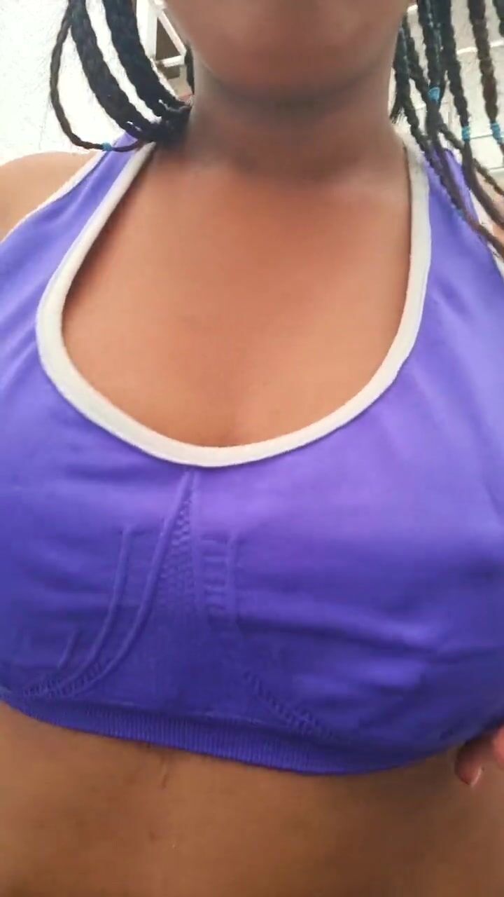 Horny ebony milf records this video for her boyfriend in her backyard
