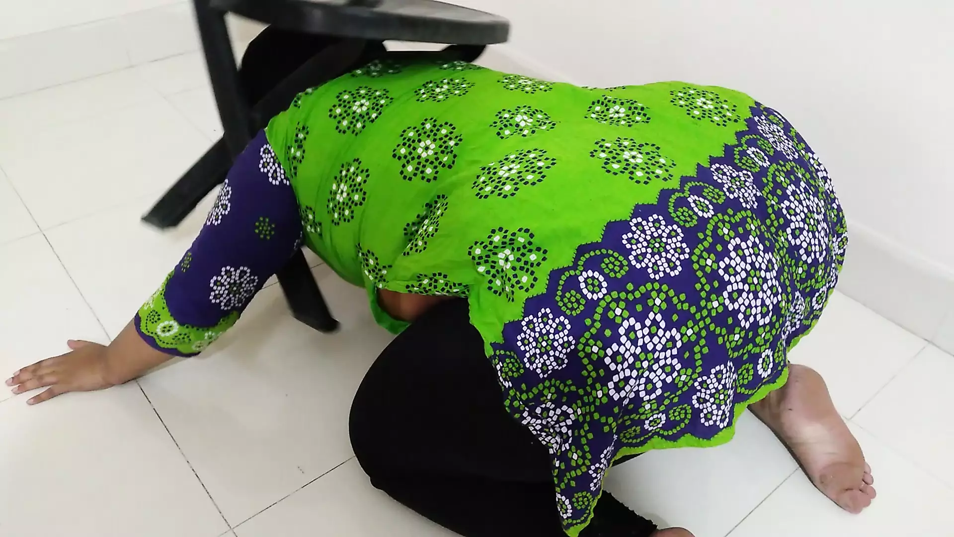 A sexy Moroccan woman with big ass gets head stuck under a chair Then Neighbor tried to free her but first fucked Anal & Cum out