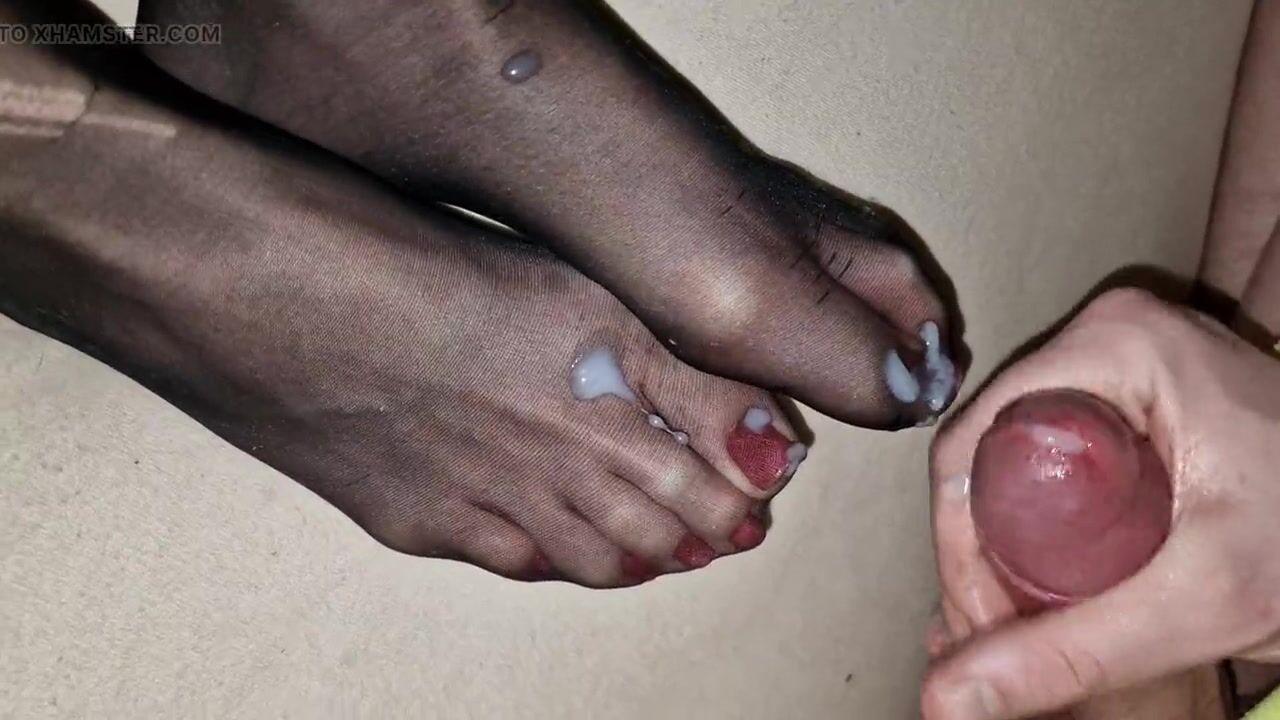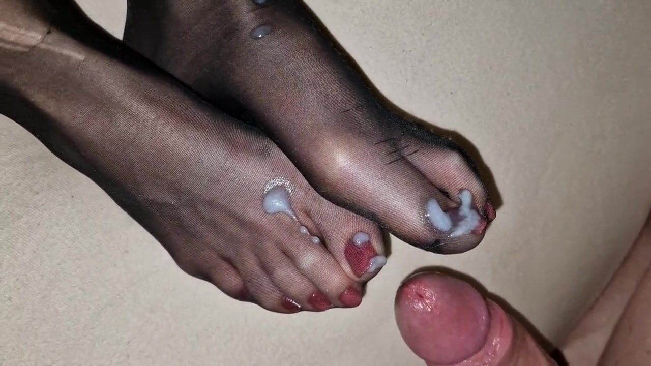 Cum on Wife s black nylon socks