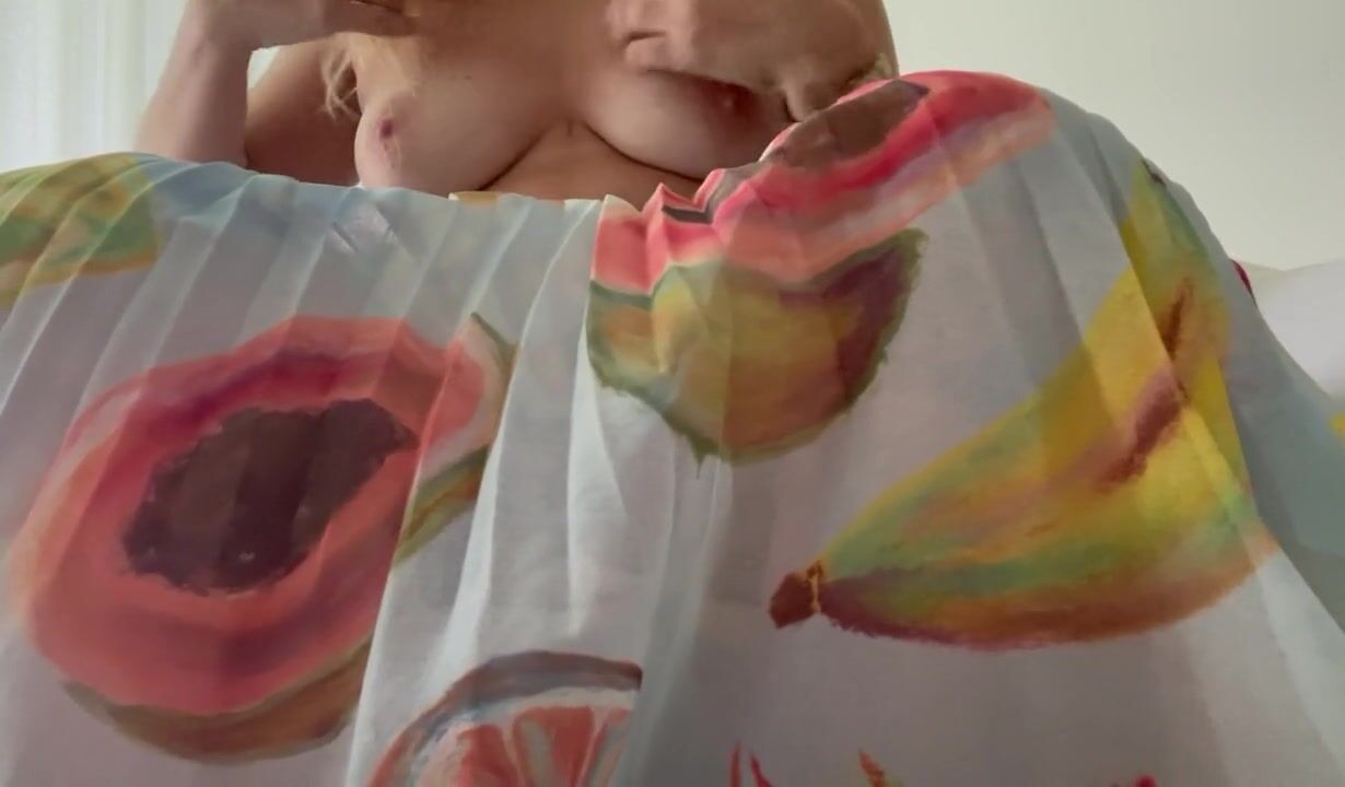 Hot blonde masturbates hairy pussy under skirt