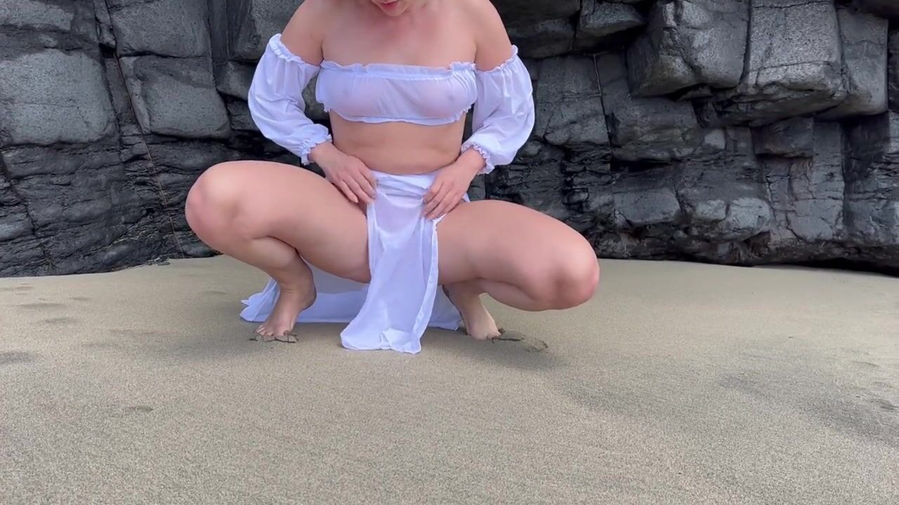 Girl Pissing on the beach in public