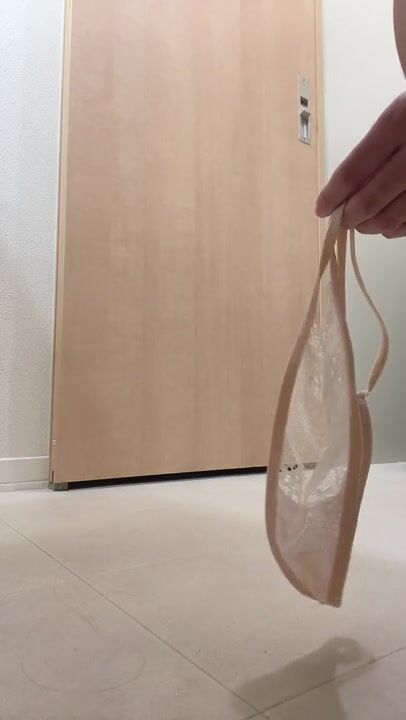 【変態CA】9/12今日の染み付きベージュの透け透けTバック❤️パンチラ、パンツ脱ぎからおまんこ汁付きの黄ばんだクロッチまで見てね♪