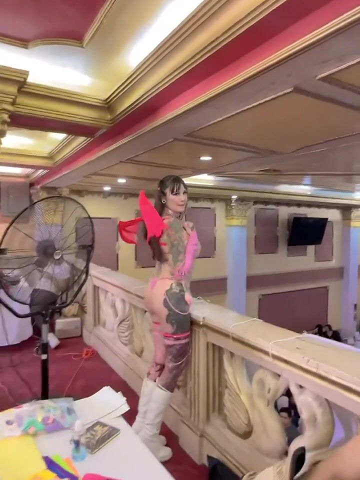 Cosplayer cachonda no puede evitar mostrar las tetas en convención de anime