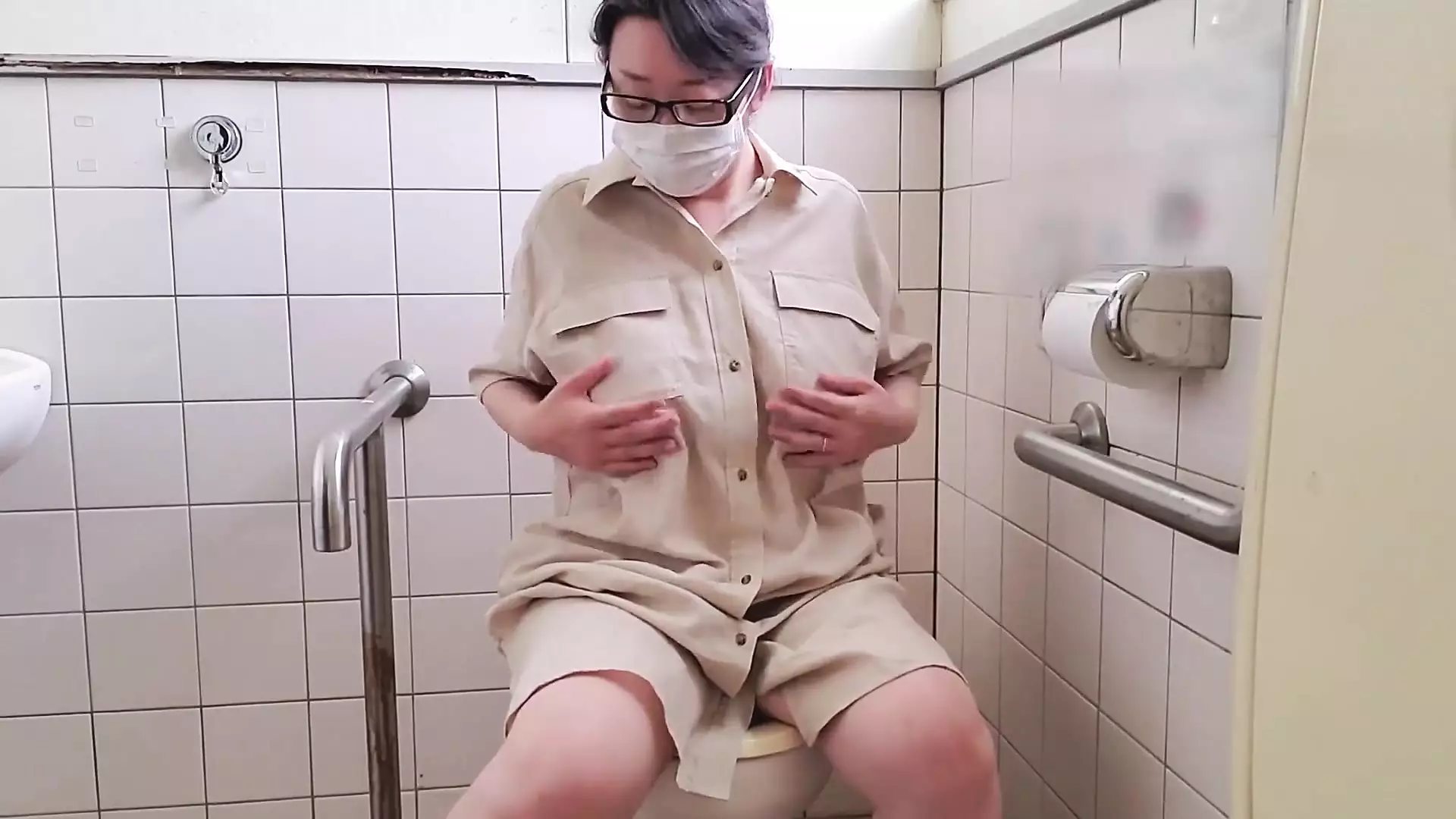 A Married Woman Masturbates in the Toilet During a Walk
