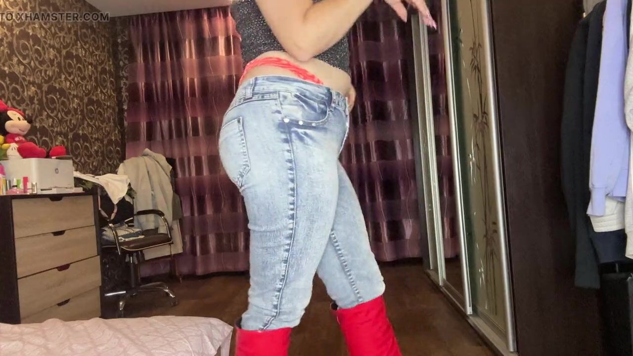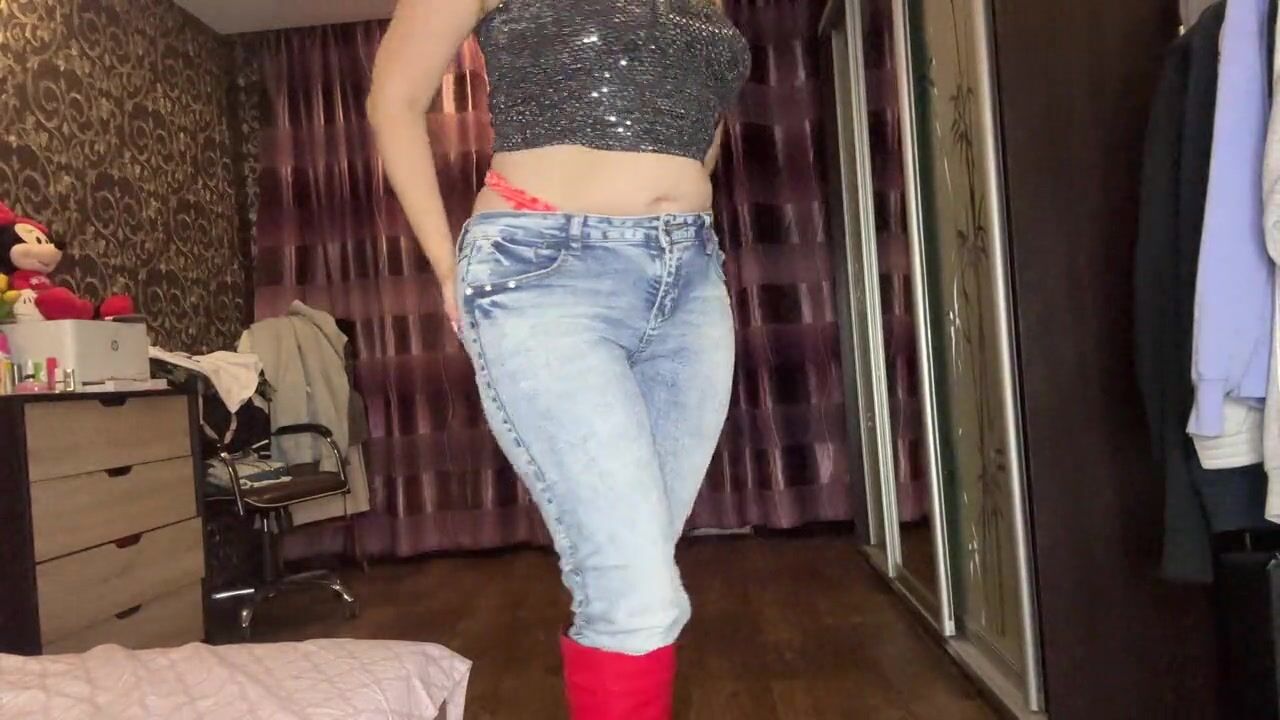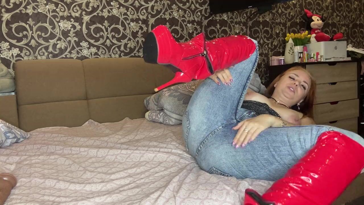 I Have a Great and Sexy Look Today! I'm Wearing Red Long Boots and Blue Jeans and a Top! Very Sexy and I'm Playing with Myself!