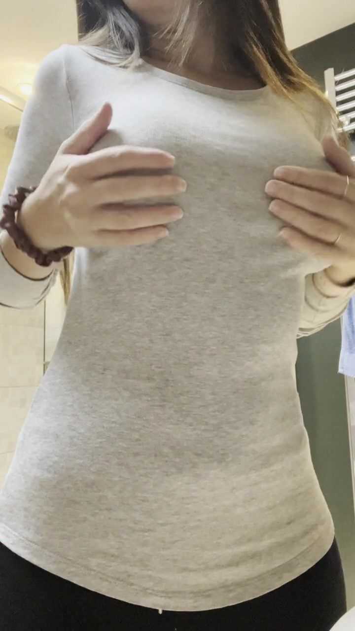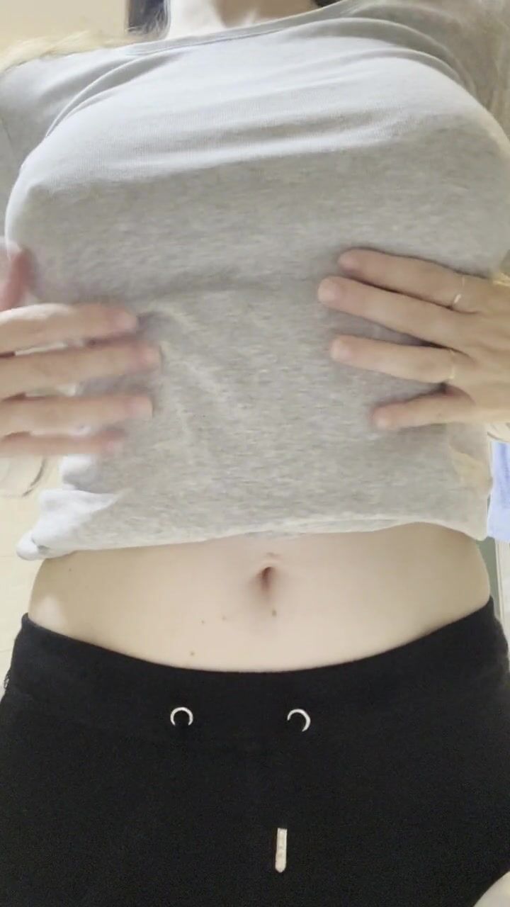 big fake tits in tight top hard nipple and boob play