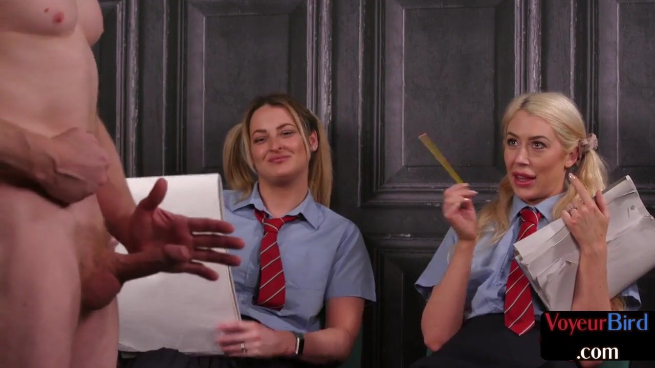 College uniform voyeurs teasing guy